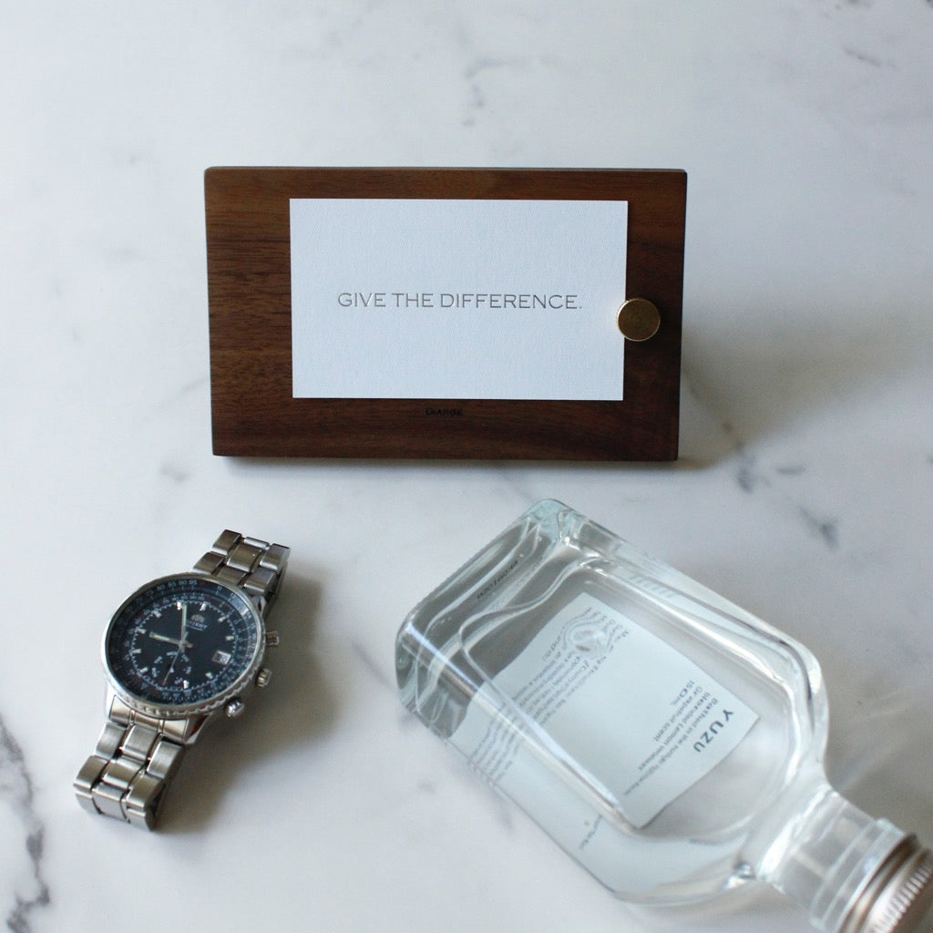 ウォルナットのプレートと真鍮の組みネジを組み合わせたカードスタンド